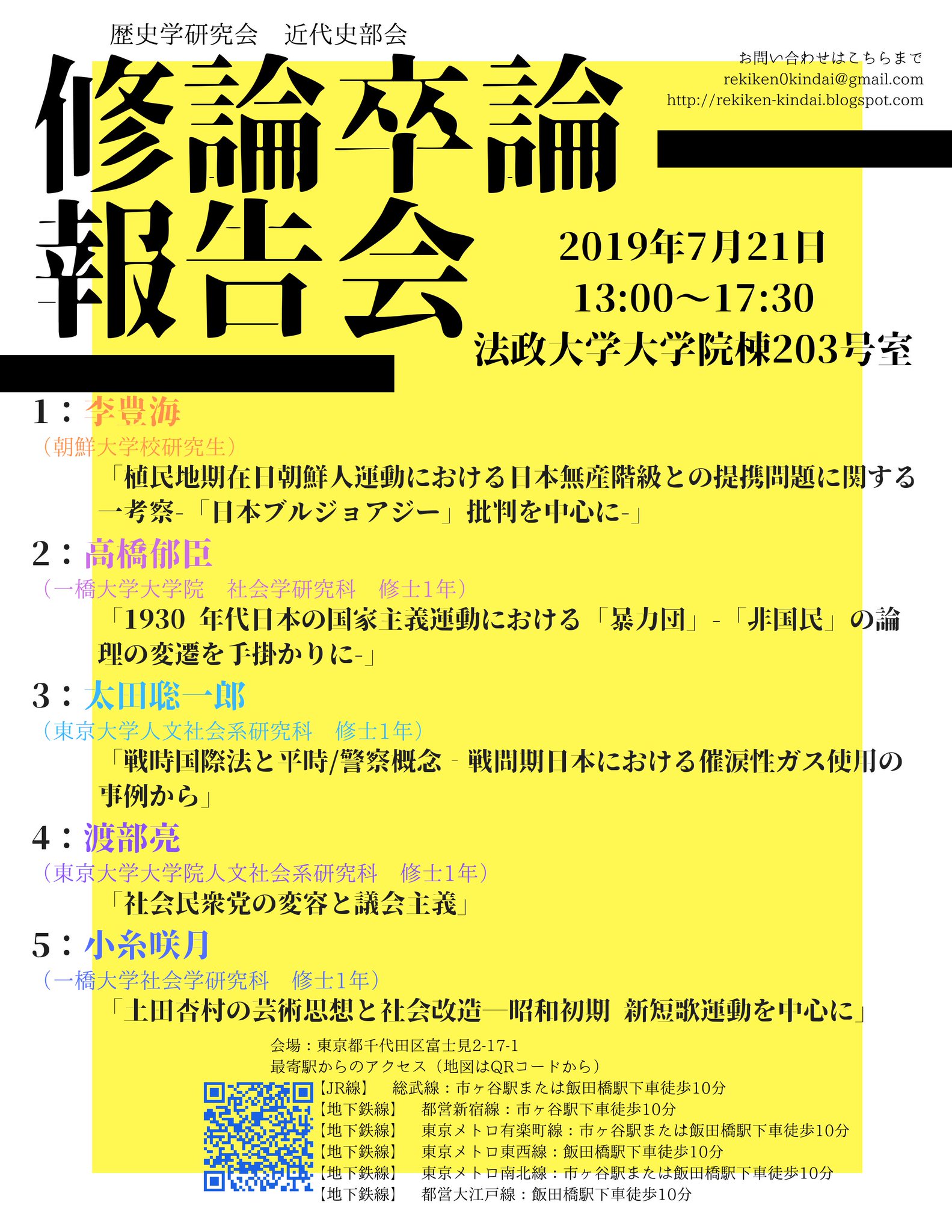 歴史学研究会 近代史部会 on Twitter "近代史部会主催「修論・卒論報告会」を7月21日(日)法政大学大学院棟(https//t.co/fD6dQZ1fZT …)203号室にて開催
